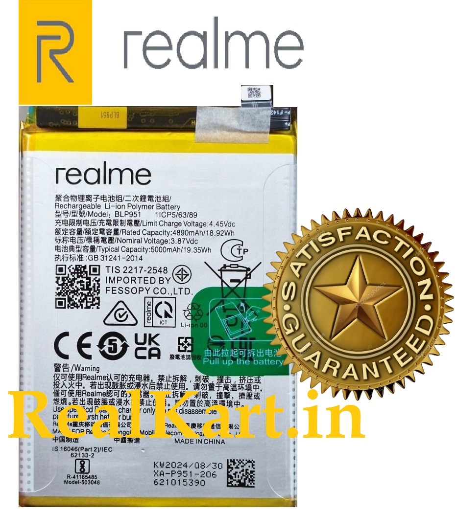 100% Original Brand New Realme 10 Pro+ 5G (RMX3687, RMX3686) Realme 11 NFC Mobiles Realme BLP951 Battery 5000mAh with 6 months warranty.