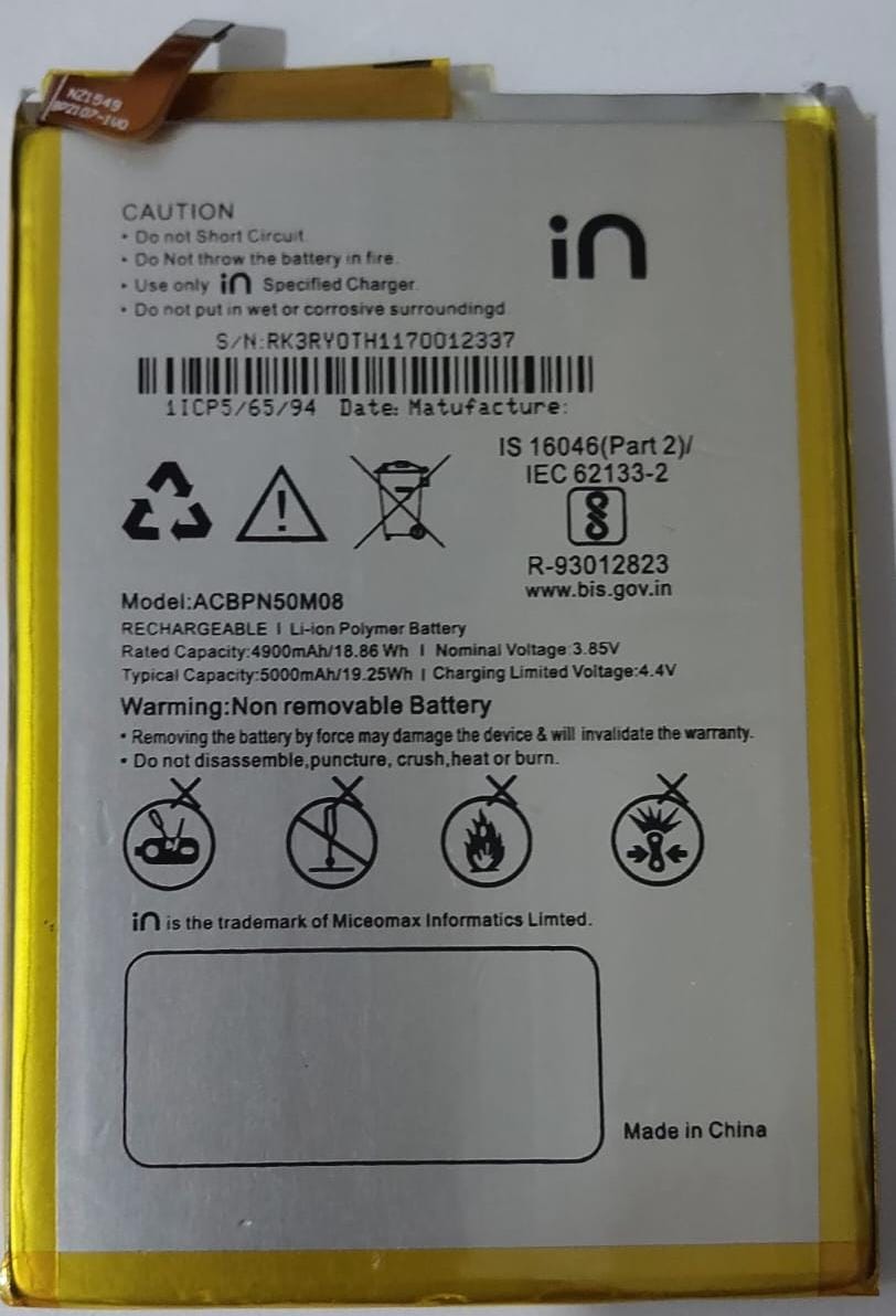 100% Original Brand New Micromax IN 2C (E6533) Mobile Micromax ACBPN50M08 5000mAh Battery 6 months warranty.
