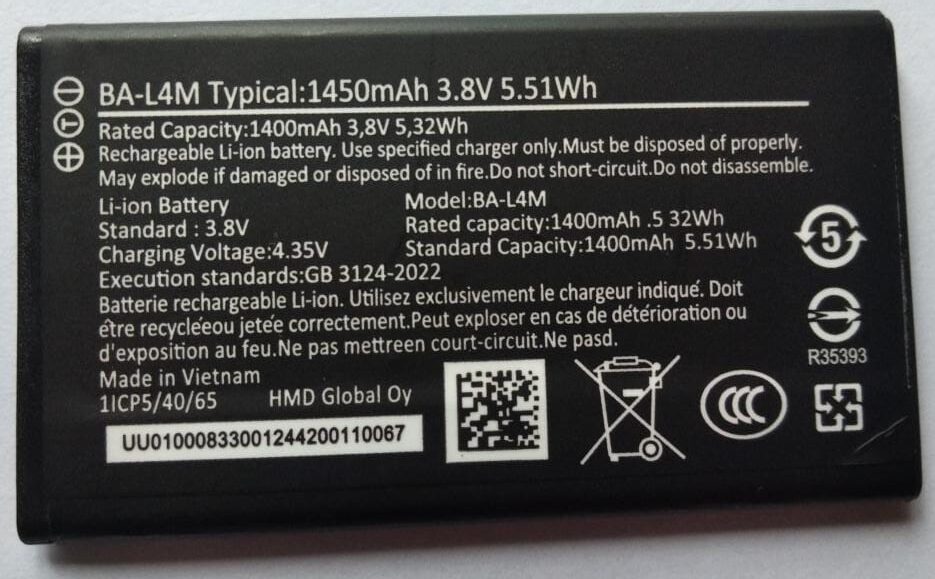 100% Original Brand New Nokia 220 4G / 235 4G & 3210 4G Mobiles Nokia BA-L4M 1450mAh Battery 6 months warranty.