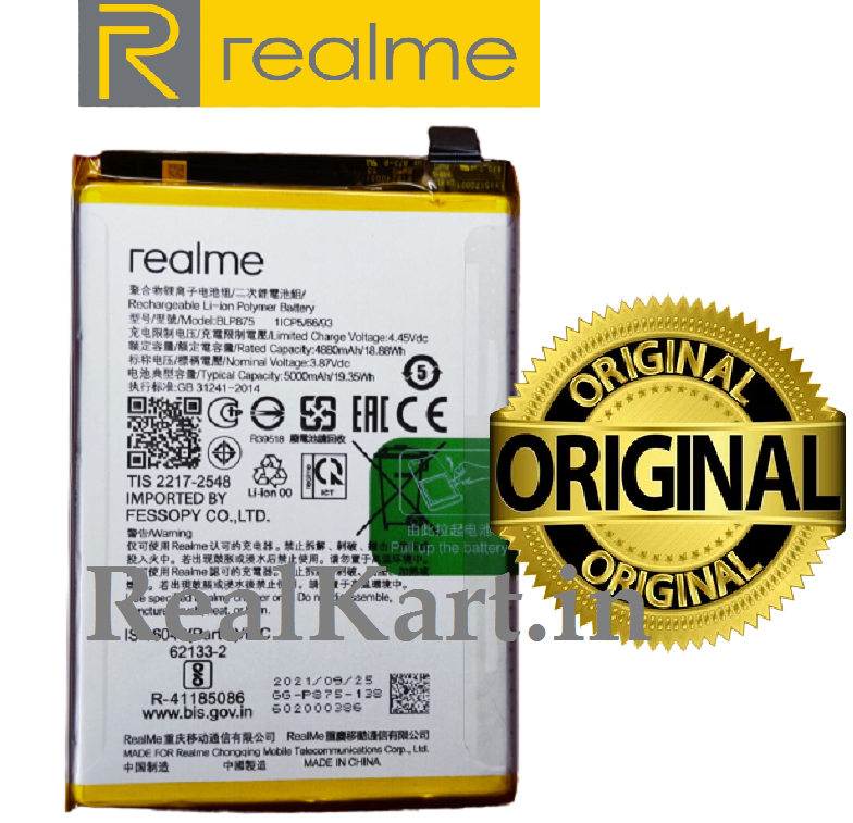 100% Original Brand New Realme BLP875 Battery For Narzo 50/ Narzo 50 5G / Realme C55 / Realme 9 5G Speed Edition (RMX3461) / Realme 9 5G SE – 5000mAh with 6 months warranty.