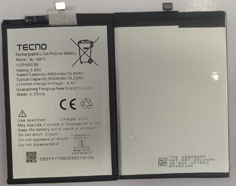 100% Original Brand New Tecno BL-49HT 5000mAh Battery for Tecno Spark 6 (KE7) / Camon 16 (CE7, CE7j) / Camon 16 Pro (CE8) Mobiles with 6 months warranty.